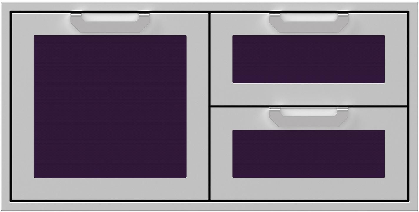Combo door/drawers deliver highly convenient heavy-duty storage. The commercial-grade handles, recessed Marquise Accented™ panels and heavy-gauge welded body complement Hestan grills in form and function.Read More