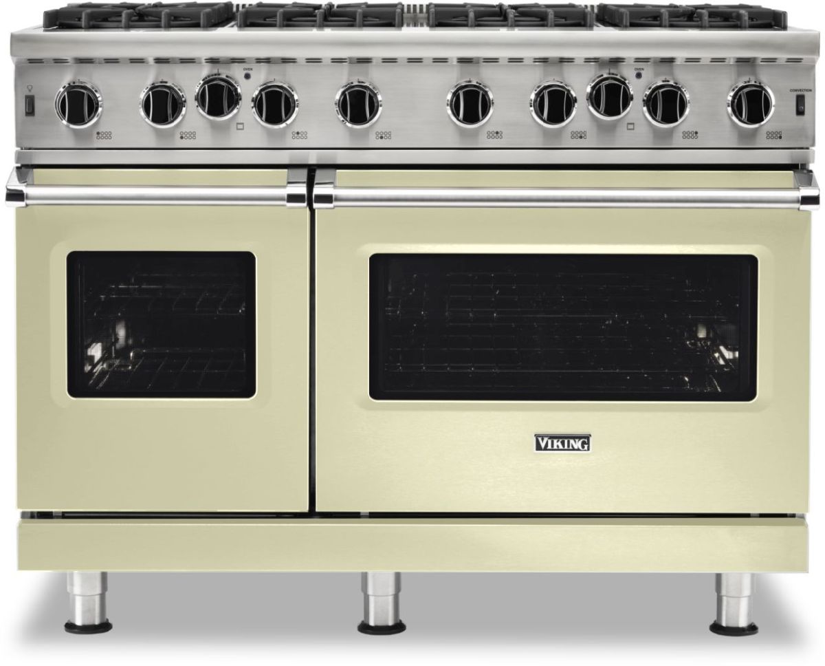 Viking® 5 Series 48" Cast Black Freestanding Gas Range features a VariSimmer™ Setting, Commercial Type Stainless Steel Open Burners, a SureSpark™ Ignition System, a Gourmet-Glo™ Gas Infrared Broiler, and ProFlow™ Convection Baffle.Read More